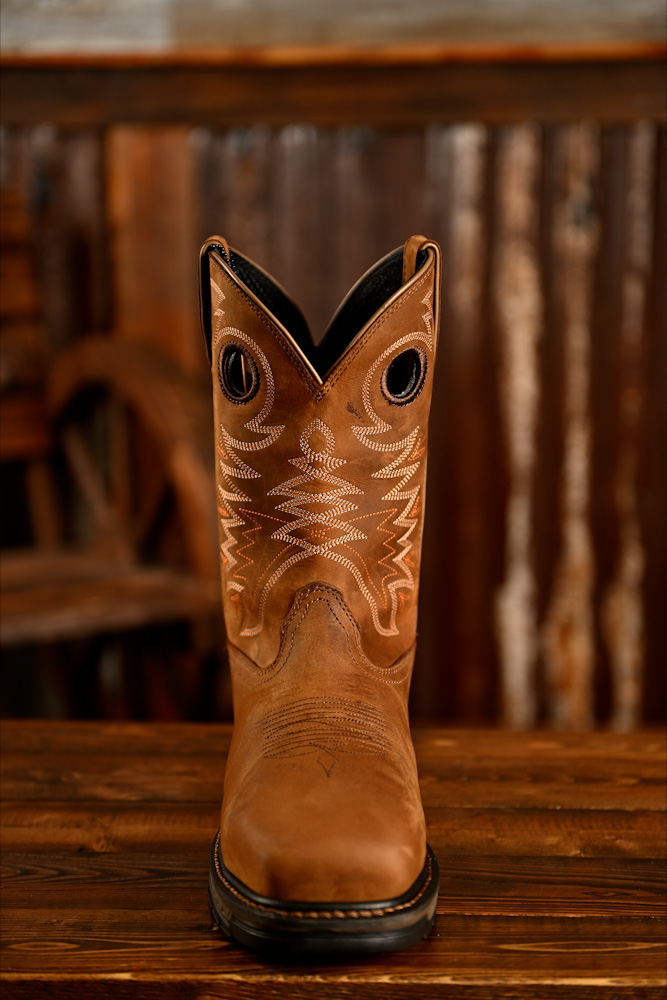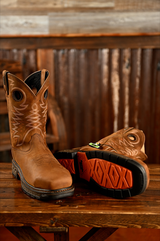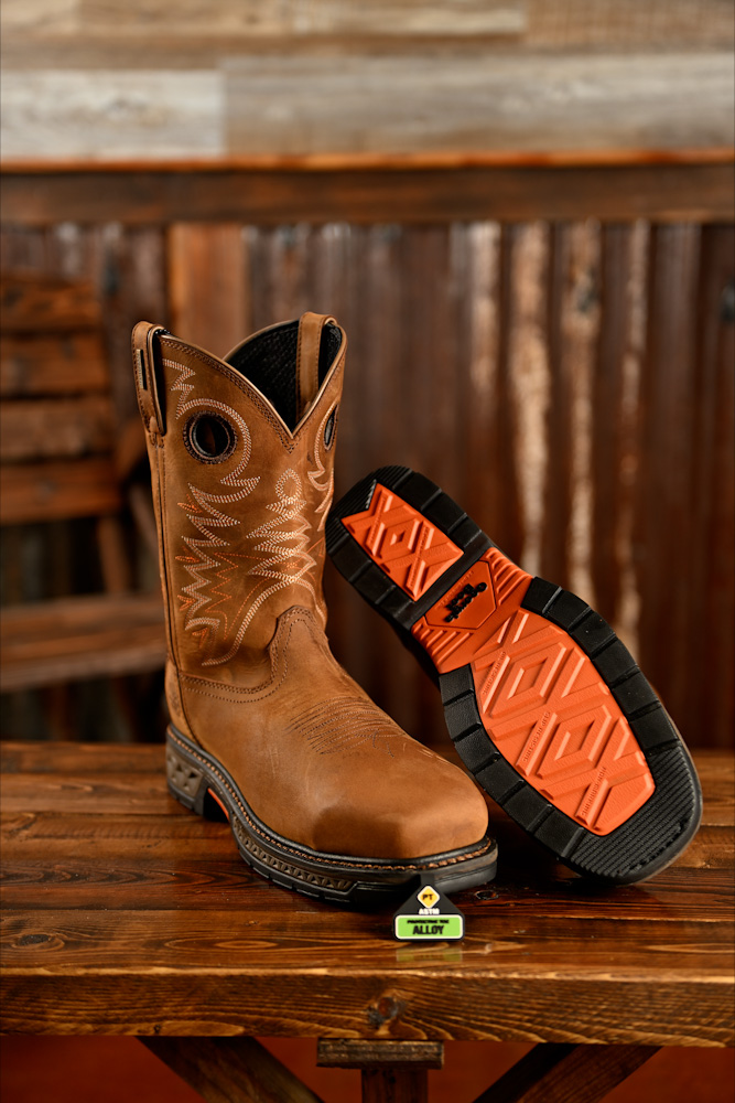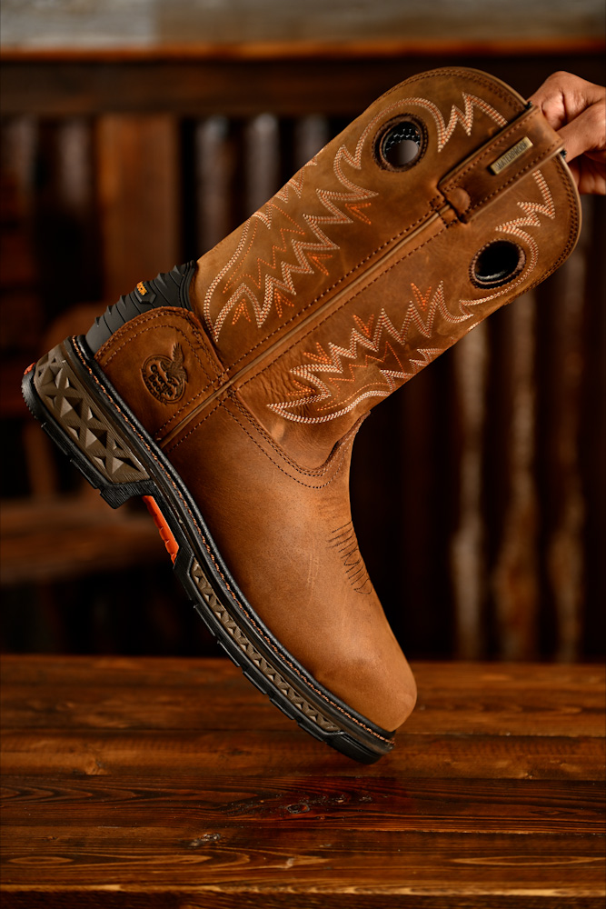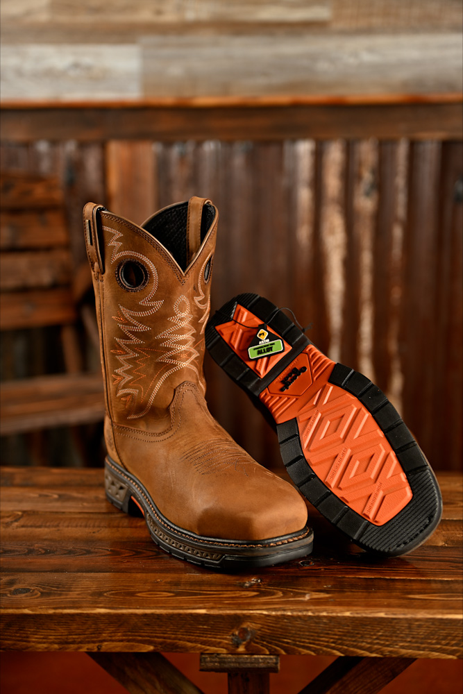 This 11 inch pull on work boot isn’t just durable, it’s packed with features to keep your feet comfortable as you go through your work day. The inside is lined with high performance mesh and is equipped with the Georgia Waterproof System. Guaranteed to keep your feet dry, this waterproofing creates a barrier against wet muck and water. Also inside is a removable cushioning polyurethane insole that quickly bounces back with each step to provide you with ultimate comfort.